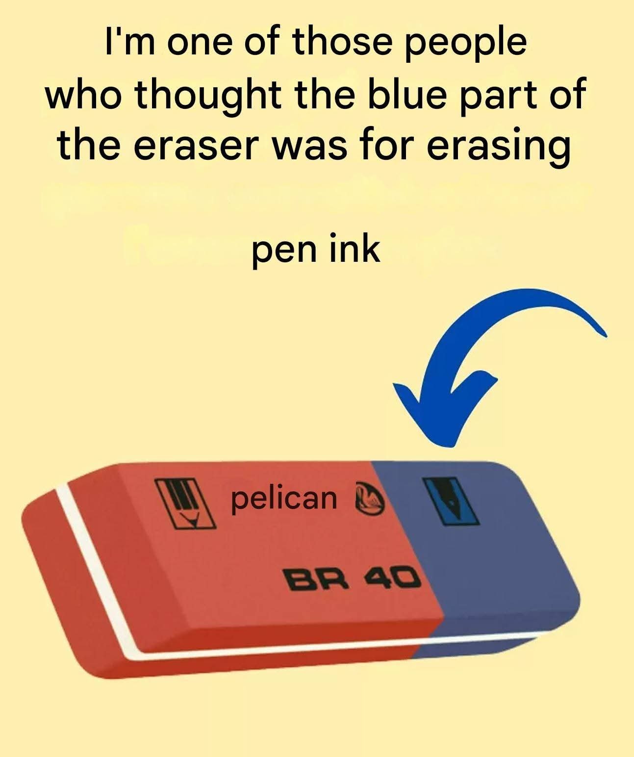 The “Blue Eraser” MisconceptionMost people think the blue part of a two‑tone eraser (like the Pelican BR 40 shown in the pic) is meant for wiping out pen ink. In reality, the blue section is usually a hard rubber designed to erase pencil marks on harder or rougher paper surfaces, while the red (or orange) side is a softer rubber for regular paper. Neither side is made to erase ink—ink needs a special ink‑eraser or chemical remover, not the ordinary blue‑red combo.