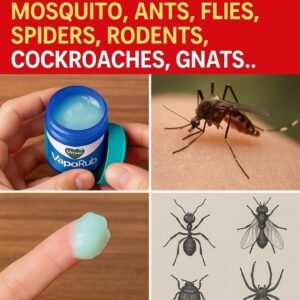 The photo suggests applying Vicks VapoRub (a mentholated topical ointment) can keep insects and even rodents away. While VapoRub is marketed for easing congestion, some people experiment with it as a homemade repellent.